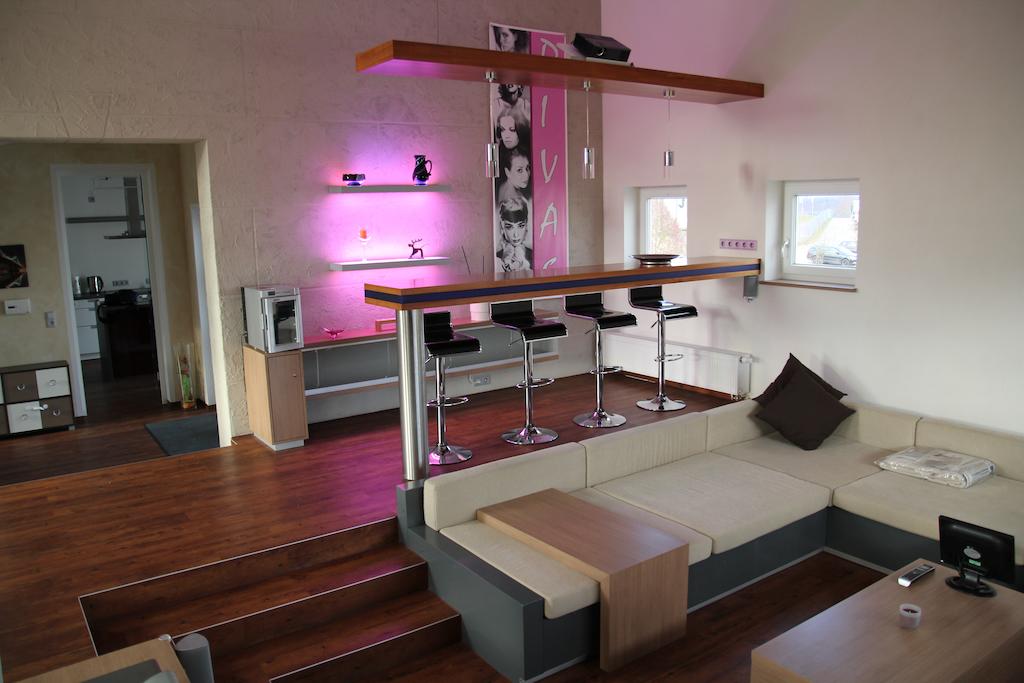 Sie wohnen exklusiv auf einer Ebene im 1.Obergeschoss mit separatem Eingang (Treppe) in traumhafter und exponierter ruhiger Lage auf ca. 161 m² in einer top-modernen und großzügigen 5-Zimmerwohnung mit Terrasse und zwei Stellplätzen. Blick auf Rottweil und die schwäbische-Alb. Vollausstattung mit 2 Flachbild TV, Bar, Beamer, Gäste-Zimmer, DSL, WLAN, Seiko EBK, 2 WC.,